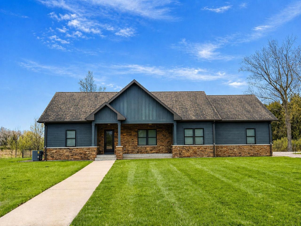 Private country living on 3.75 acres. This beautifully appointed 3-bed, 2.5-bath contemporary home welcomes you with a dramatic 14-foot peak-ceiling entry that opens into a sun-filled living room featuring vaulted ceilings, built-in bookshelves, and a gas fireplace.The kitchen is designed for function and style, offering a granite island, tile backsplash, pendant lighting, natural gas oven, and all stainless steel appliances. It flows seamlessly into a spacious dining area and a 17x12 three-season screened porch overlooking the fenced backyard.The owners suite delivers a true retreat with a walk-in rain-head shower, dual granite vanities, and a 9x13 custom walk-in closet. There are two additional bedrooms, a full bath, and a granite-topped laundry room complete the main level. Hardwood floors and Hunter Douglas window treatments.The home also includes a natural gas whole-house generator. A standout feature for enthusiasts or hobbyists: attached 2-car garage with a convenient half bath, plus a 40x30 heated detached shop with three overhead doors (fits 4+ vehicles). Two 8x40 storage containers provide additional flex-storage.Located just minutes from I-94 and historic downtown Marshall. Marshall Public Schools.